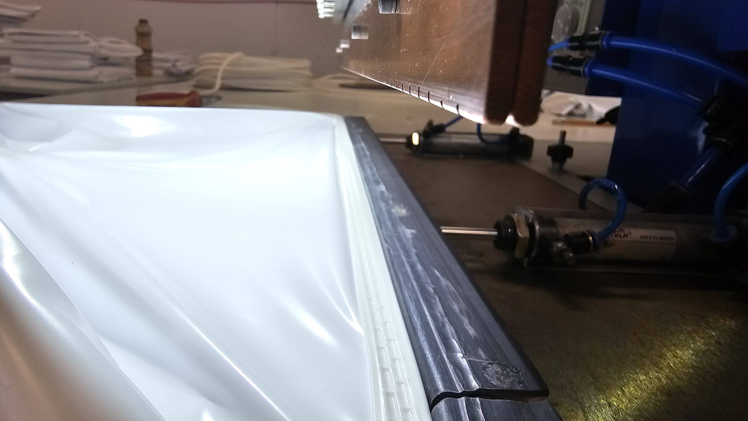 Подходяща е за производство на опънати тавани, малки и средни формати брезенти, палатки, засенчващи системи, покривала на камиони, плувни басейни, магазини, хангари, билбордове, табели, странични завеси и много други общи технически платнени сглобки.