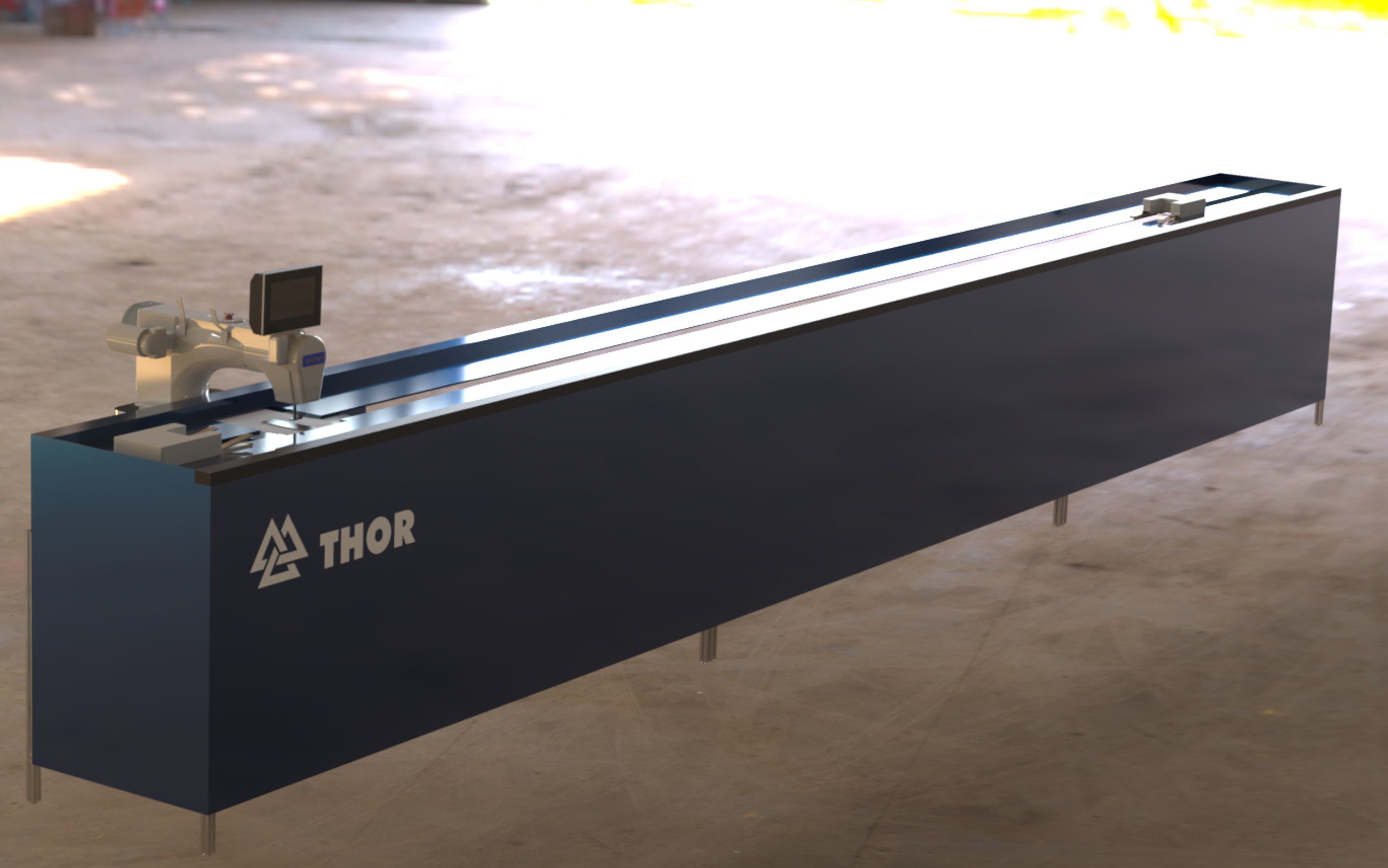 ТSW е специализирана автоматизирана работна станция, проектирана да оптимизира и повиши ефективността при зашиване на прави шевове с голяма дължина. За разлика от стандартните шевни машини, при този модел материалът остава неподвижен върху дълга маса, а шевната глава се движи автоматично по прецизна водеща релса. Процесът се контролира чрез сензорен екран, където се задават параметри като дължина на шева, скорост и други специфични настройки. Това гарантира изключителна праволинейност и повторяемост на всеки шев, което е трудно постижимо при ръчно водене на плата. Машината е идеална за операции като подгъви, зашиване на джобове за тръби, пришиване на велкро ленти и силиконови кантове.
